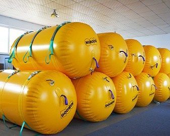 Спасательные мешки DOOWIN имеют полностью закрытую конструкцию цилиндрической формы. Он известен как закрытые пневмоподвески, водные надувные блоки или спасательный понтон.