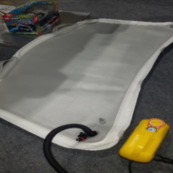Легко крепится с помощью нейлоновых ремней и ремней для глаз из нержавеющей стали к большинству лодок, надувается и складывается, а также быстро хранится в собственной сумке.
