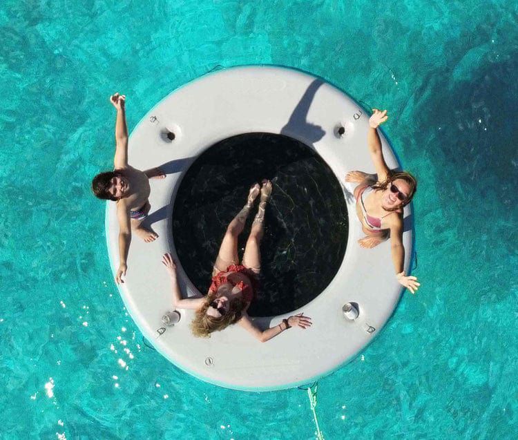 Надувной причал круглой формы размером 250x15 см с сетчатой серединой - отличное решение для отдыха, загара и общения на воде. Благодаря сетчатой середине, которая легко снимается, причал может вместить до 6 человек без риска переворачивания, наклона или опрокидывания.