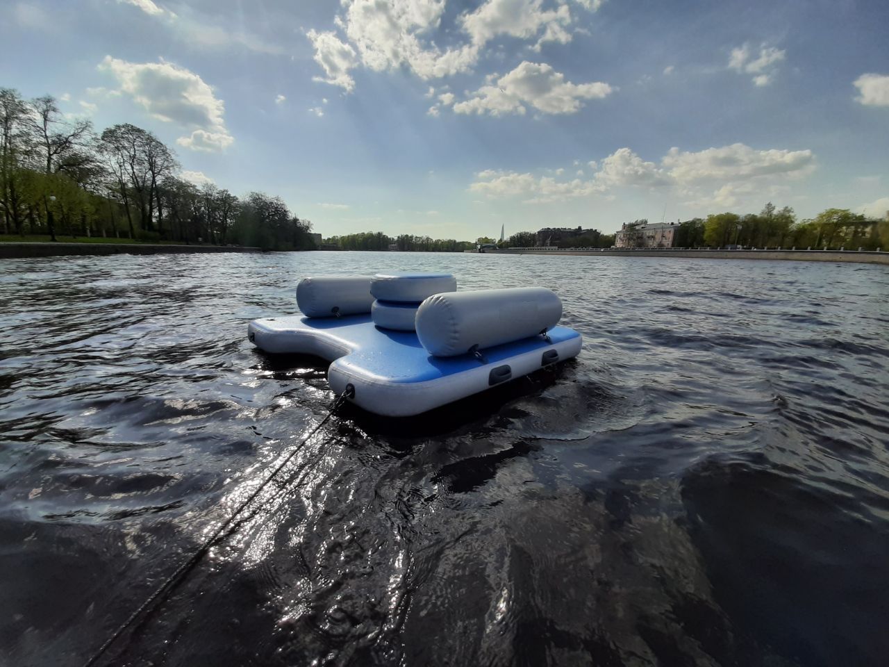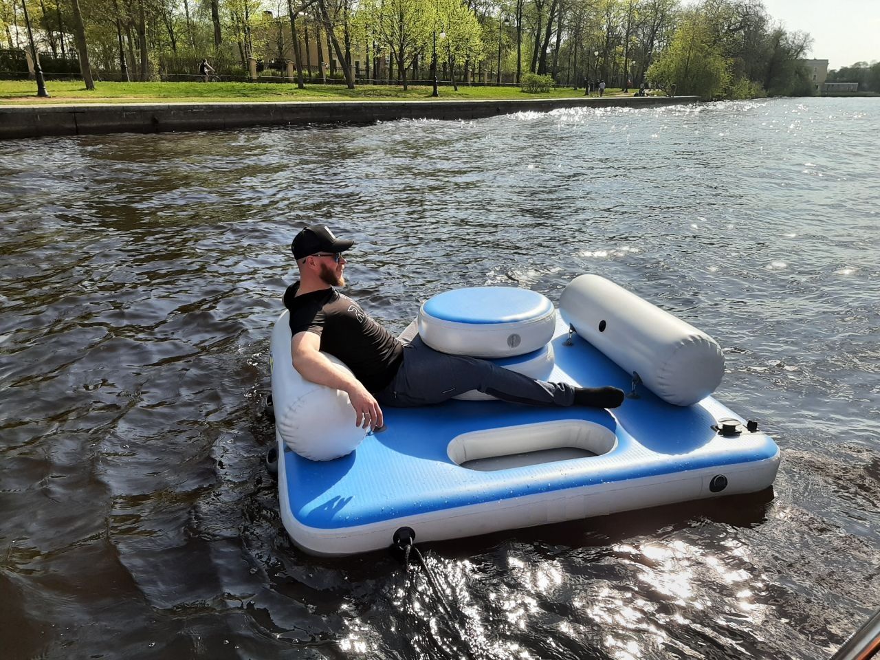 Этот надувной плот изменит ваш способ расслабиться на воде. Имеет не скользящую верхнюю поверхность, размеры 2 х 2 метра и удобна для 2-3 взрослых.
