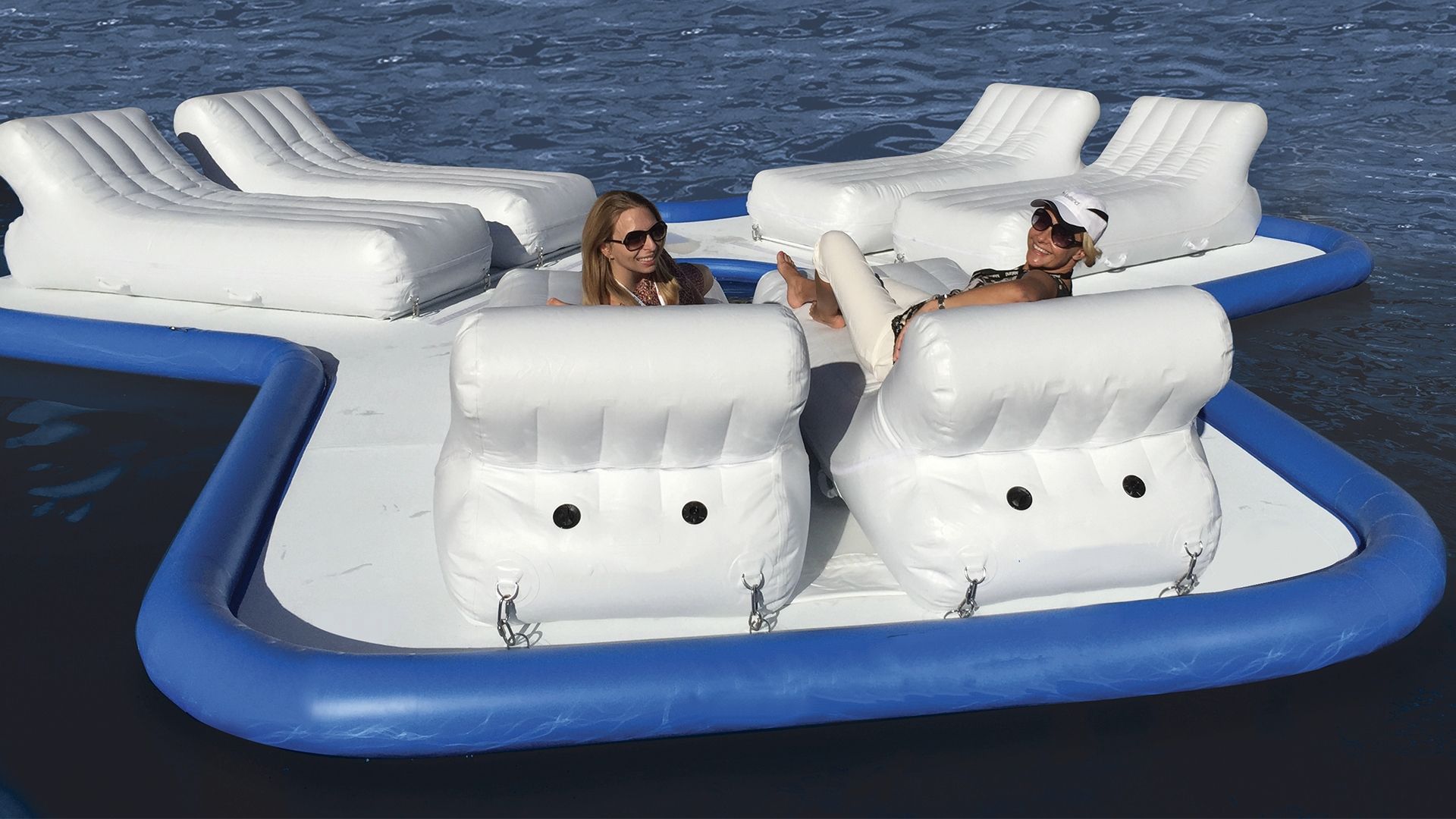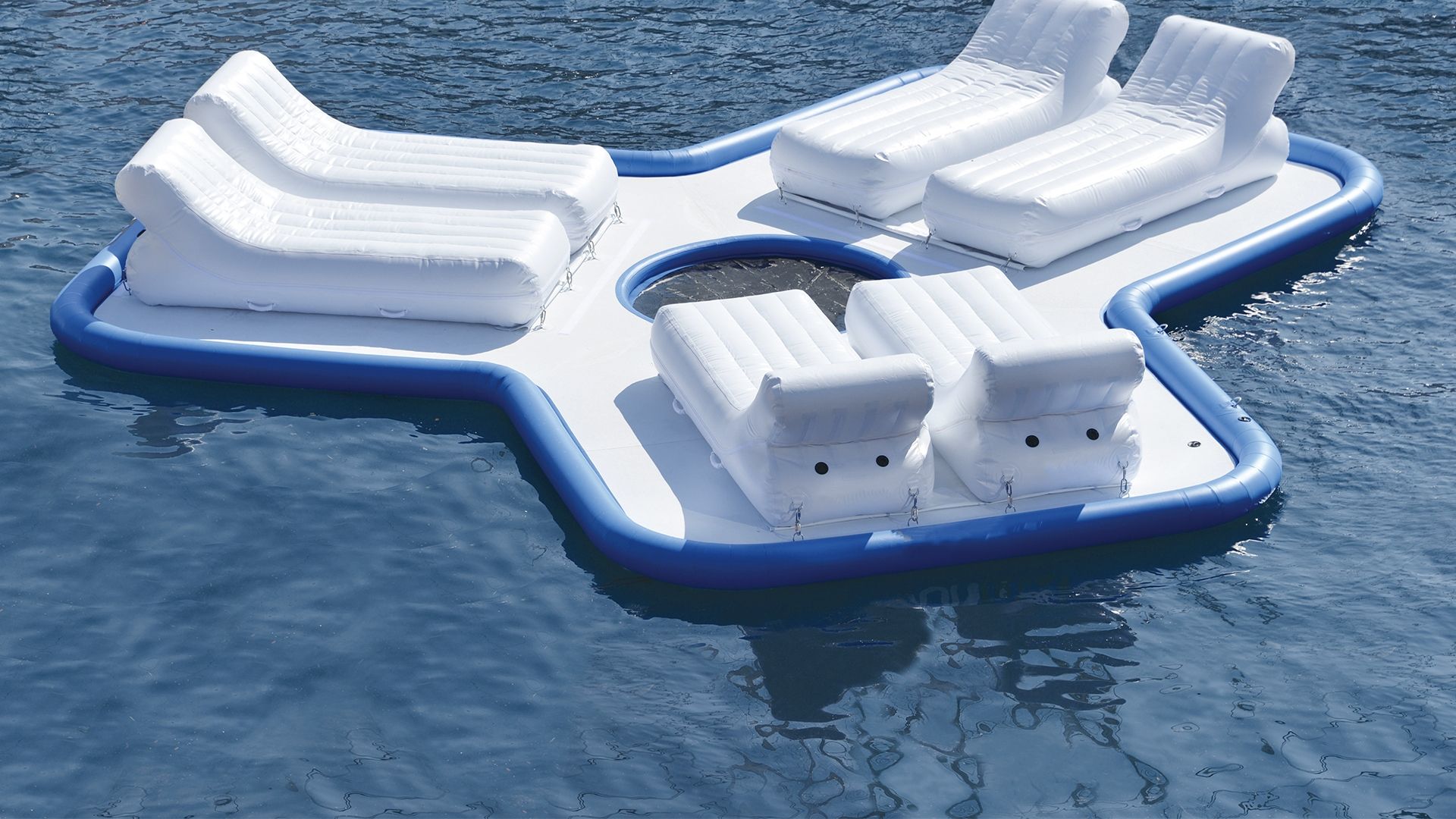 Надувной плот для отдыха - идеальный способ повеселиться и позагорать на воде. Свободно плавающий надувной остров, который можно привязать к задней части вашей яхты, или же обустроить на пляже, дока или пристани, эта универсальная платформа позволит вам развлечься, где бы вы ни находились. Он идеально подходит для принятия солнечных ванн, коктейлей на закате и отдыха на воде. Он также является платформой для дайвинга и зоной отдыха для гостей, которые хотят отдохнуть после водных видов спорта. Первоначально спроектированный с шестью шезлонгами, которые гостям делают удобную спинку, подлокотник, а также бассейн для погружения чтобы сохранить прохладу.