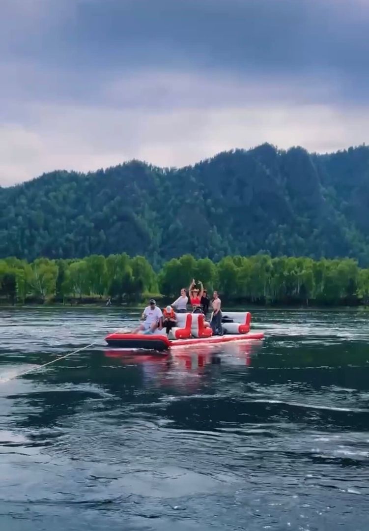Надувной плот для туристического сплава по рекам отлично подойдёт для спуска компанией до 12 человек.