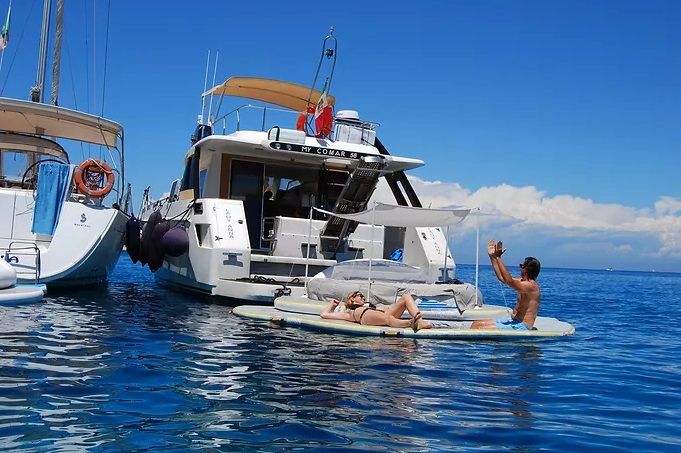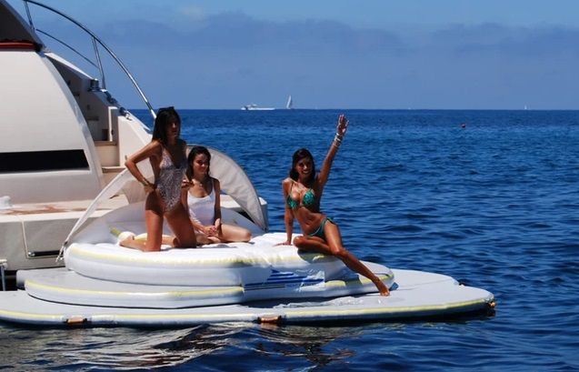 Он выходит за пределы яхты примерно на 4 метра