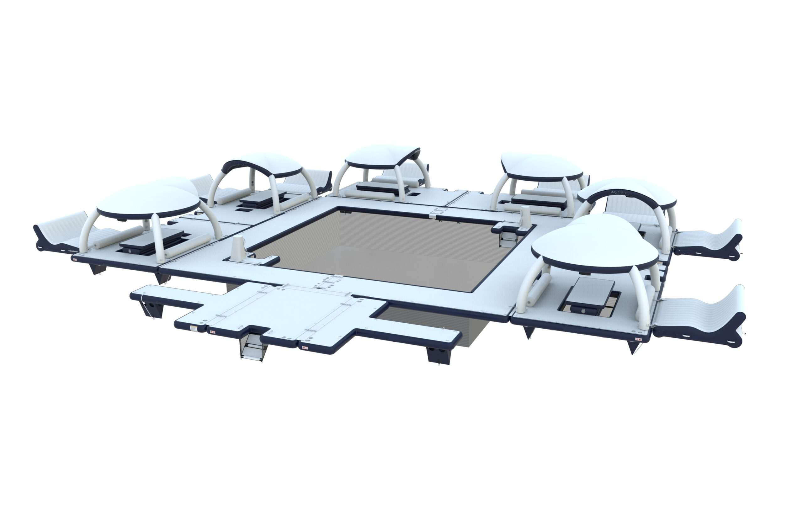 Курортный бассейн , рассчитанный на более чем 25 человек, представляет собой отличную основу для создания плавающего бара для многих прибрежных мест по всему миру. Добавьте платформы для вечеринок или шезлонги, чтобы создать зону, где люди могут отдыхать на воде весь день. Спросите нас о индивидуальном дизайне, соответствующем вашим потребностям. Все бассейны считаются фундаментными и отправляются 5 частями на одном поддоне, включая: Сторона бассейна A, сторона бассейна B, съемная сетка, насос и комплект шлангов. Размеры 800 х 800 х 20 см