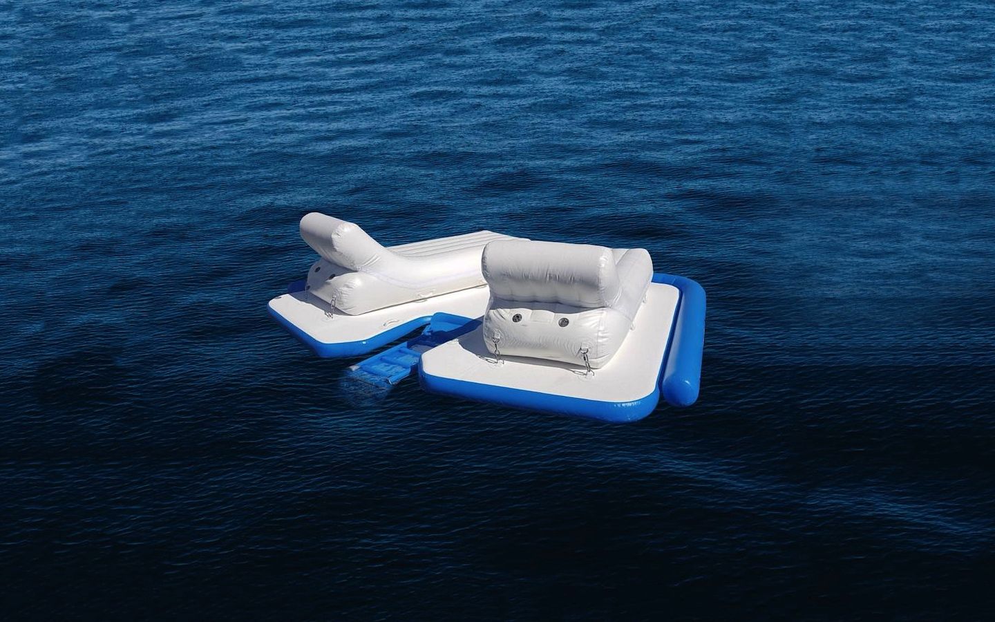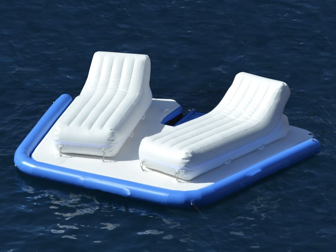 Плавучий остров- отличный способ для владельцев и гостей яхты расслабиться на воде. Два эргономичных шезлонга расположены на устойчивой плавающей платформе с морской лестницей, которая поможет вам элегантно выйти из воды. Если вам нравится чувствовать песок между пальцами ног, вы также можете снять шезлонги на время пляжных дней или привязать их на мелководье. Шезлонги также хорошо работают в качестве дополнительных сидений на палубе. Привязан к яхте Плавучий остров можно привязать к яхте, находясь в открытом море, или соединить с другими островами для более крупной вечеринки. или часть обустройства пляжа Плавучий остров включает в себя два съемных шезлонга, которые можно использовать на палубе или легко транспортировать для роскошного отдыха на пляже.
