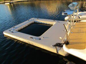 Палуба с бассейном , который подходит большинства круизеров. Бассейн закрыт съемной сеткой и имеет 4 подстаканника в каждом углу . Эта палуба идеально подходит для того, чтобы вы могли быстро окунуться, выпить и расслабиться на задней части лодки. Вокруг бассейна достаточно места для принятия солнечных ванн и достаточно устойчив, чтобы вы могли ходить вокруг него . Сетка имеет очень маленькие отверстия диаметром около 1,1 мм.