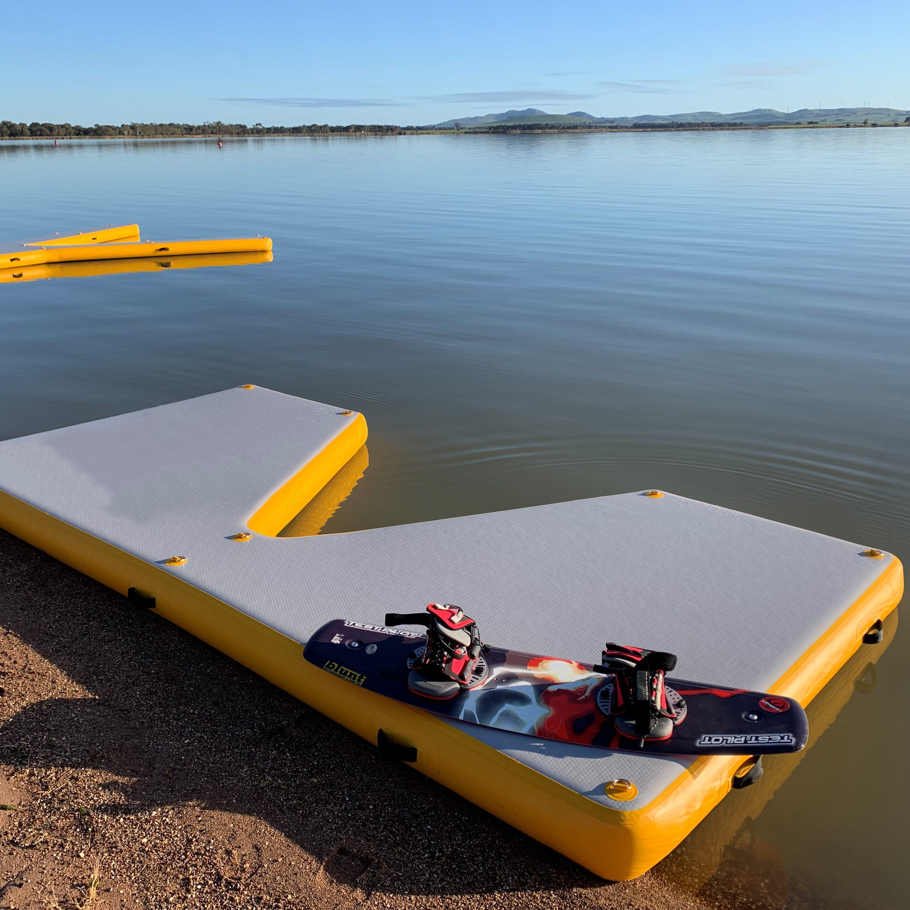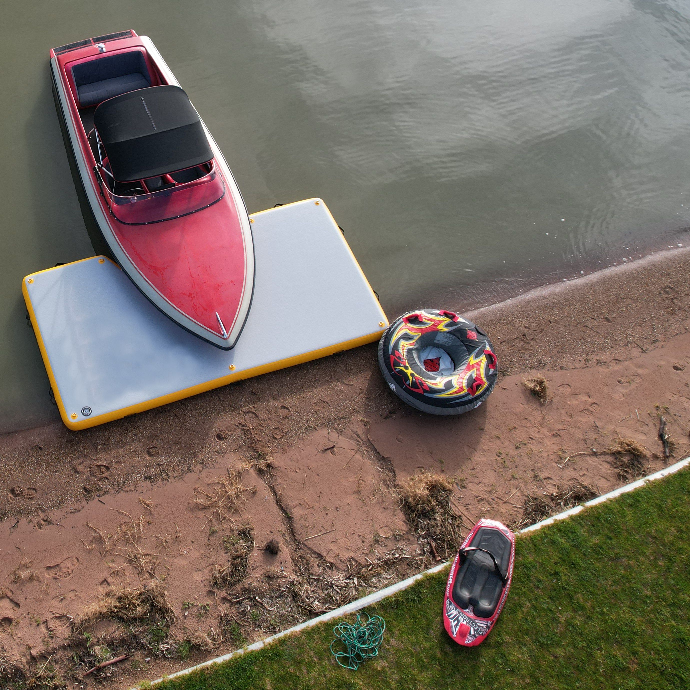 Плавучая платформа, которую можно закрепить с берега на воде, что позволяет пассажирам легко заходить на лодку и выходить из нее. Изготовлен из материала AirDECK, надувание и сборка занимает примерно 10 минуты. Используется владельцами лодок, которым нужен быстрый и легкий доступ к своей лодке, а также для тех, кто поддерживает свою лодку в чистоте от грязных и песчаных ног!