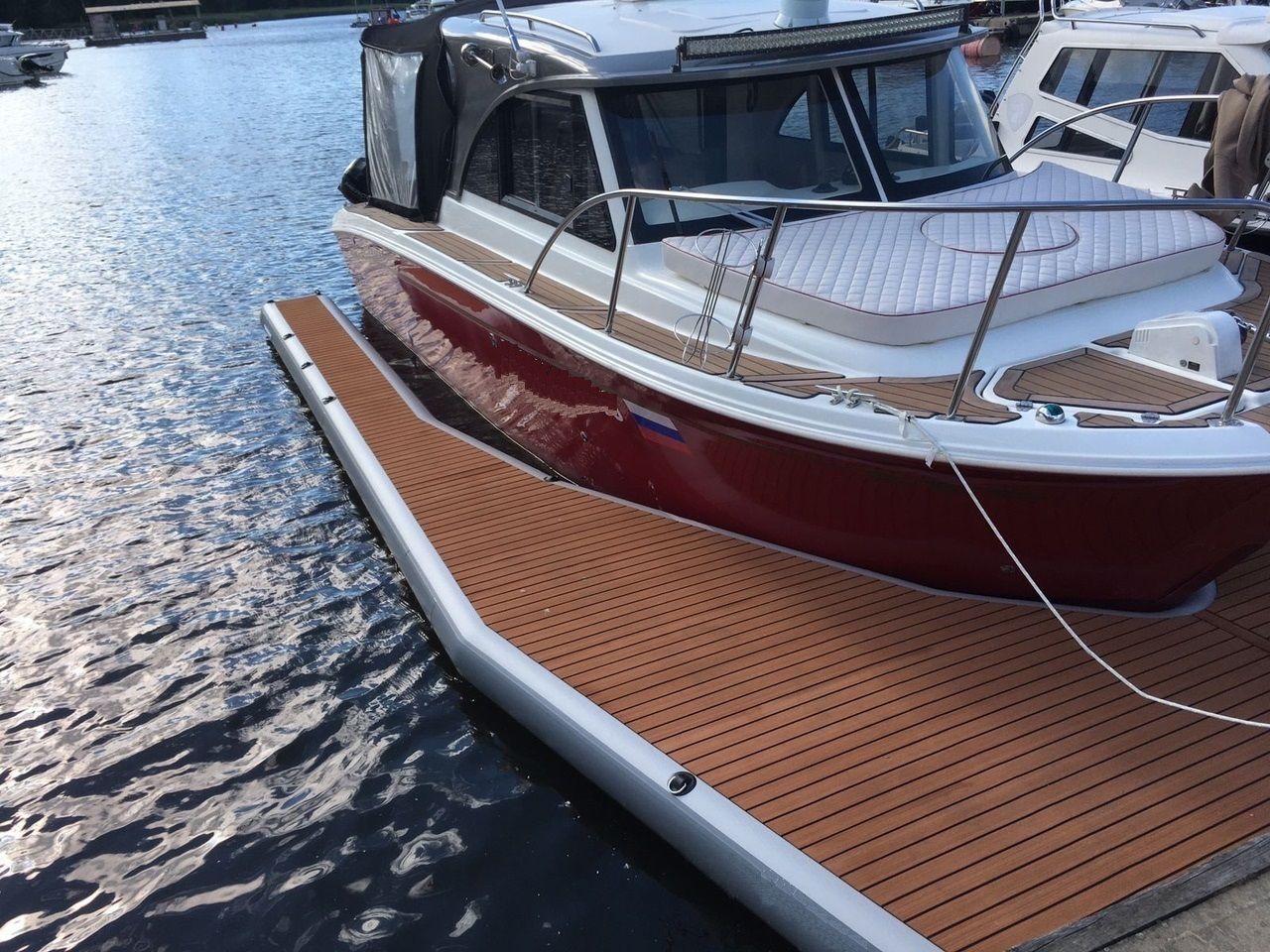 Плавучая платформа для швартовки вашего катера, которую можно закрепить к бетонному или деревянному пирсу, что позволяет пассажирам легко заходить на лодку и сходить с неё и помогает избежать повреждения корпуса при причаливании и парковки. Изготовлен из материала AirDECK, надувание и сборка занимает примерно 15-20 минут. Используется владельцами лодок, которым нужен быстрый и легкий доступ к своей лодке, а также для тех, кто поддерживает свою лодку в чистоте причал дает доступ по всему периметру.