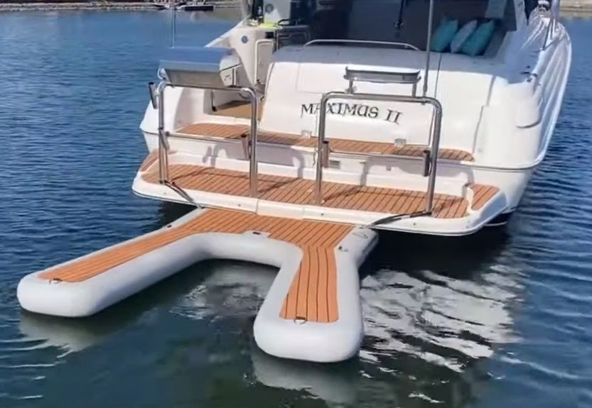 Портативной и прочная платформа, которую можно легко прикрепить к вашей лодке, что позволяет пассажирам легко входить и выходить из вашего катера или гидроцикла. Изготовлен из современных материалов , надувание и сборка занимает около 2 минут. Используется владельцами лодок, которым нужен быстрый и легкий доступ к их водному мотоциклу, или просто чтобы у вас было больше места в задней части лодки!