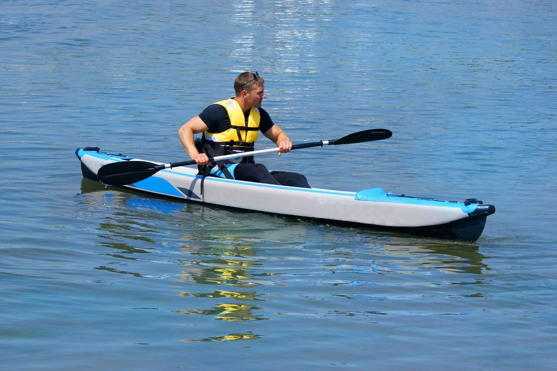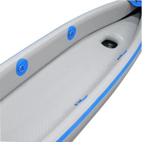 Этот надувной каяк один из самых лучших и универсальных надувных байдарок на рынке сделан из современного материала AirDeck что позволяет накачать его более жестким и похожим на оригинальный деревянный каяк