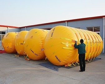 Спасательные мешки DOOWIN имеют полностью закрытую конструкцию цилиндрической формы. Он известен как закрытые пневмоподвески, водные надувные блоки или спасательный понтон.