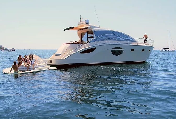Он выходит за пределы яхты примерно на 4 метра